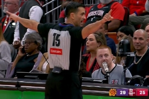 本场比赛火箭主场的计时器一直修不好,无法显示进攻时间或比赛时间,据火箭随队记者Lachard Binkley报道,现场改为人工提醒时间。