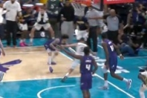 攻防发力!爱德华兹冲击内线起飞暴扣 追防又送米切尔排球大帽