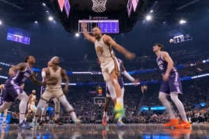 风卷残云!汤姆林抢断反击快下 接球起飞单臂暴扣