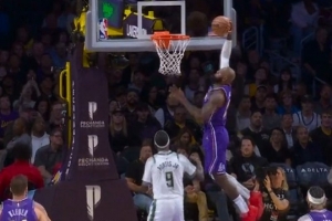 你只管飞!米切尔输送炮弹 莫布里高高跃起单臂空接灌篮