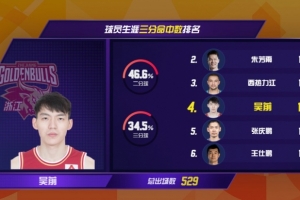 此役过后,吴前CBA生涯三分球命中总数达到1276个,超越张庆鹏独占CBA历史三分榜第4位。