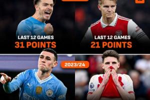 体育资讯02月14日讯 阿森纳本轮1-1战平布伦特福德,枪手的领跑优势还有4分。数据机构盘点了过去3个赛季,剩下12轮阿森纳和曼城的战绩,结果或许是枪迷不愿看到的。
