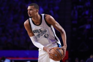 体育资讯2月16日讯 今日,全明星世界队成员、马刺球星维克托·文班亚马出席了新闻发布会。