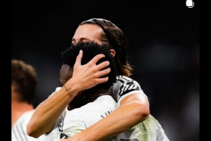 卡雷拉斯社媒晒出拥抱维尼修斯的照片,配文:“我们与你站在一起,兄弟。”