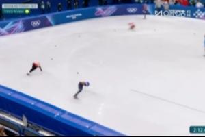 还剩5圈时,荷兰选手舒尔廷和意大利选手孔福尔托拉碰撞后一起摔倒,场上局势大乱,中国香港选手林静欣不久后摔倒,而杨婧茹几乎锁定第三。