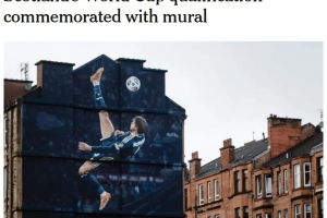 这幅由阿迪达斯委托创作的壁画于周五在苏格兰队主场格拉斯哥球场外揭幕,以纪念“苏格兰历史上最伟大的进球之一”。