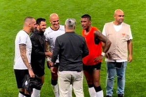 你什么冠军?奥塔门迪向维尼修斯展示世界杯冠军纹身,两人都笑了